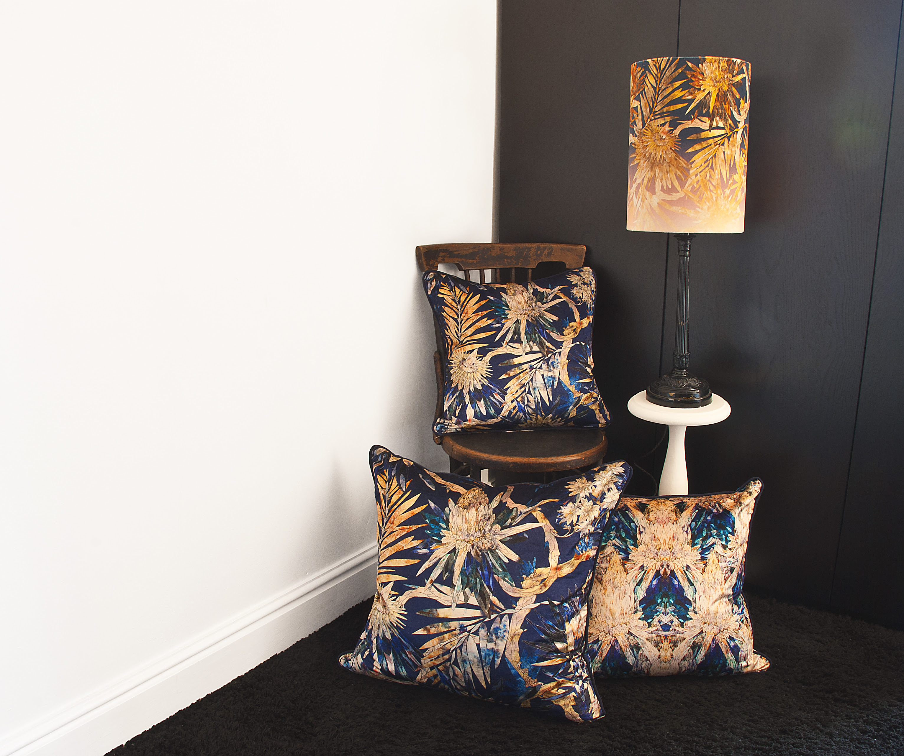 Midnight is the embodiment of luxury, with a deep royal navy ground and majestic gold and copper tones, key colour