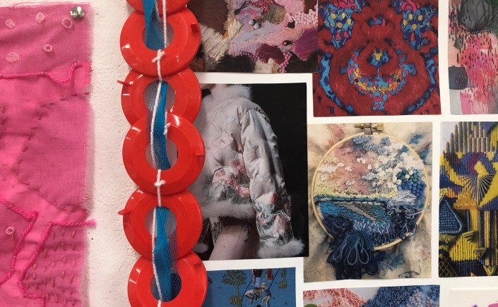 Using found materials and spoils from the scrapstore the students are creating fantasy yarns and threads. From this experiment they will construct exciting 3D surfaces and structures