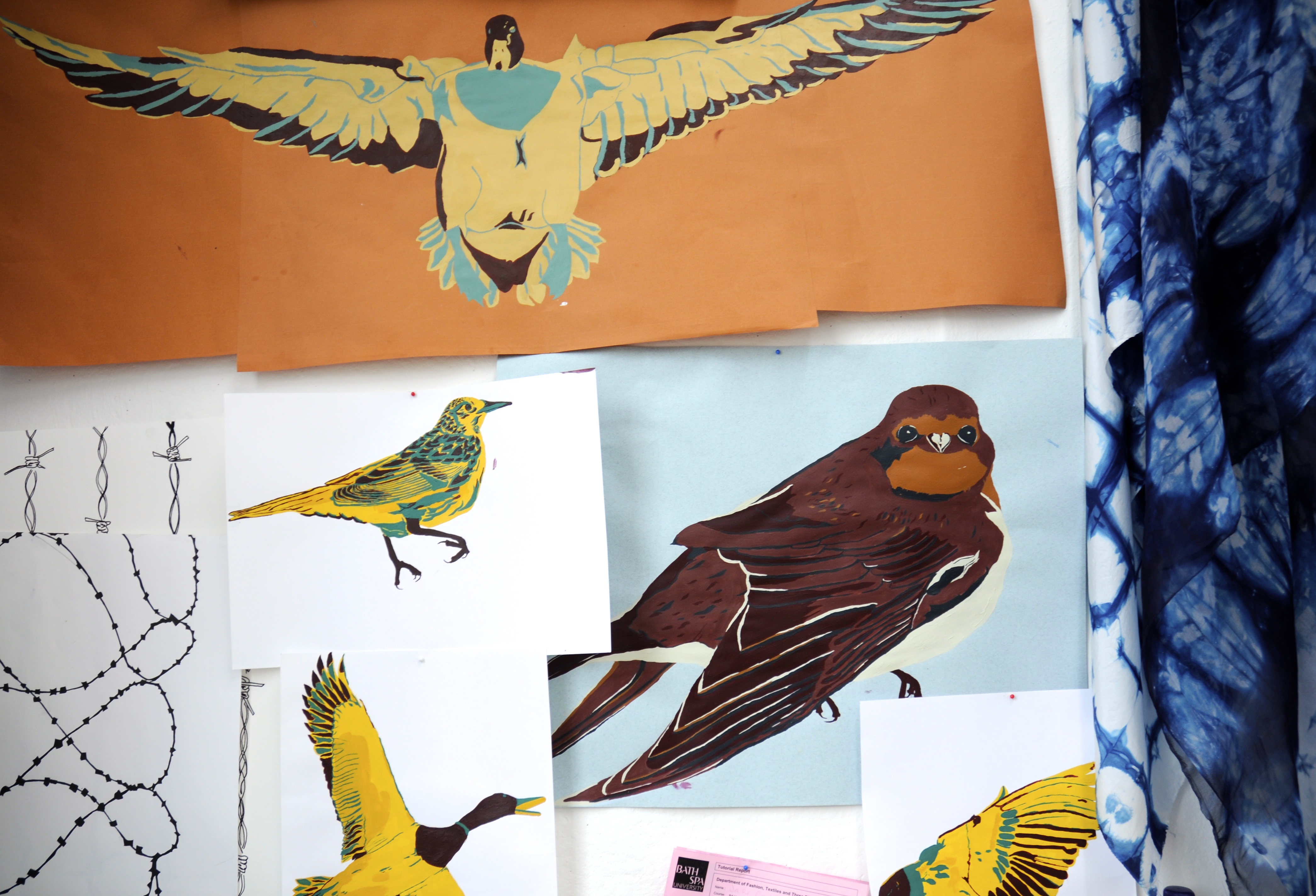 Graduate Tabitha Cottrell always displayed her ideas and inspiration in an inspiring way in her studio space and she didn’t disappoint when it came to displaying her work in the end of year show. Here is an image of the backdrop to her handmade animals.