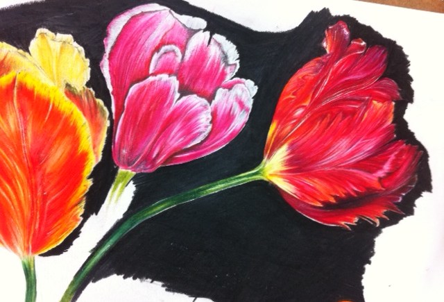 Amy is right on trend with her final collection.Taking an exotic, colourful and tropical jungle theme Amy Nichols is working her ideas out in the form of printed and appliqué textiles.The bold and exuberant outcomes are accessories and printed fabric lengths.We’re looking forward to seeing everything out on colourful display!